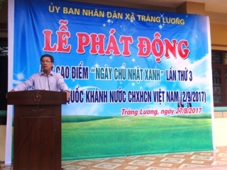 Sáng 27/8/2017, Hưởng ứng phong trào Ngày chủ nhật xanh – sạch – đẹp và tạo không khí vui tươi, phấn khởi chào mừng Lễ Quốc Khánh 2-9, UBND xã Tràng Lương tổ chức ra quân dọn vệ sinh môi trường đồng loạt trên toàn địa bàn xã.Về dự và chỉ đạo có Đ/c Dương Minh Tuyến – Bí thư Đảng ủy - Chủ tịch...